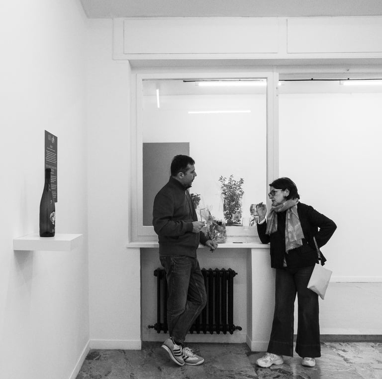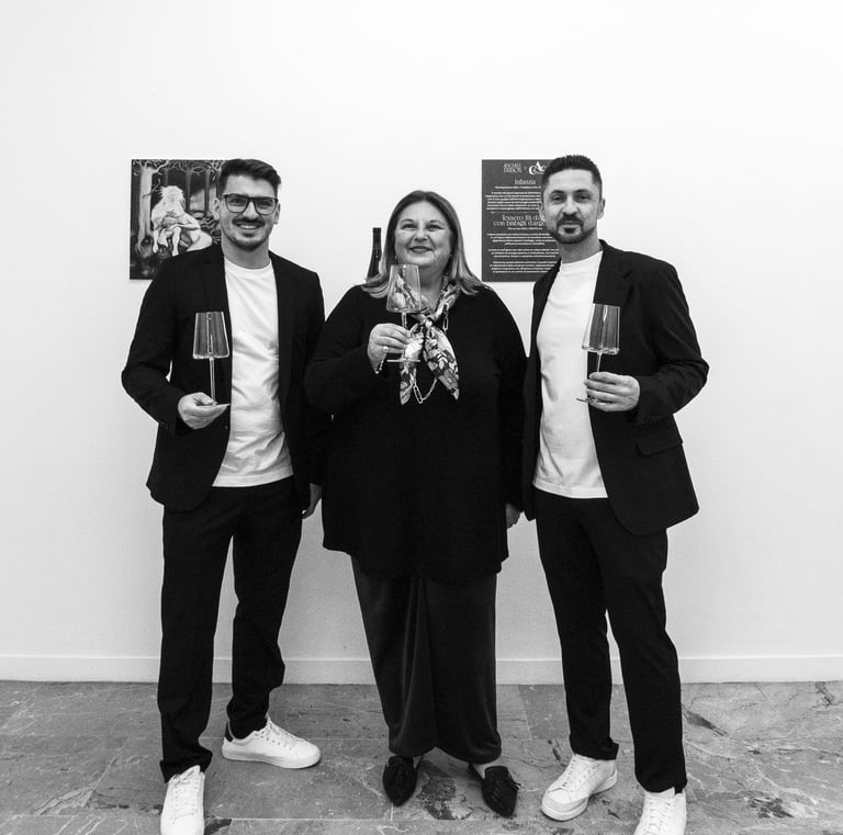 Questo connubio non solo celebra la bellezza della creatività, ma valorizza anche il nostro vino, trasformando ogni sorso in un'esperienza estetica.