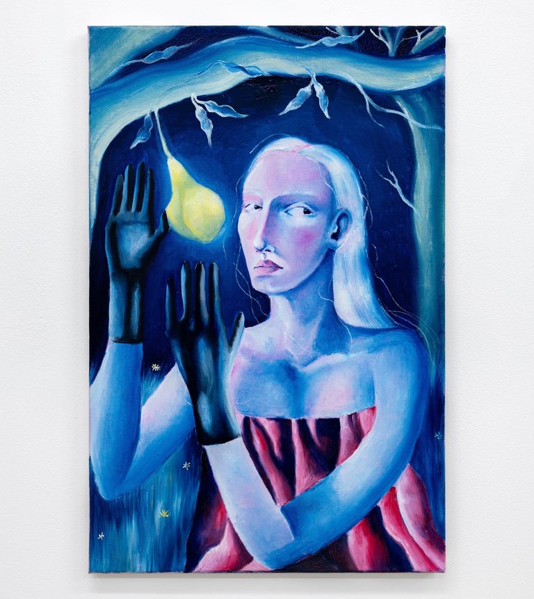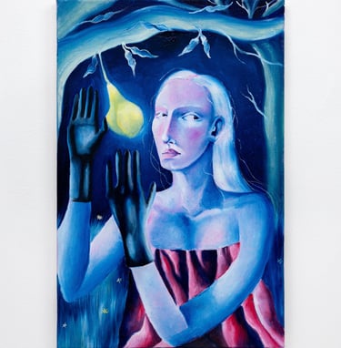Through this striking contrast, the painting delves into the complexity of human emotions, capturing that magnetic glow which both fascinates and unsettles, drawing the viewer into a whirlpool of conflicting feelings.
